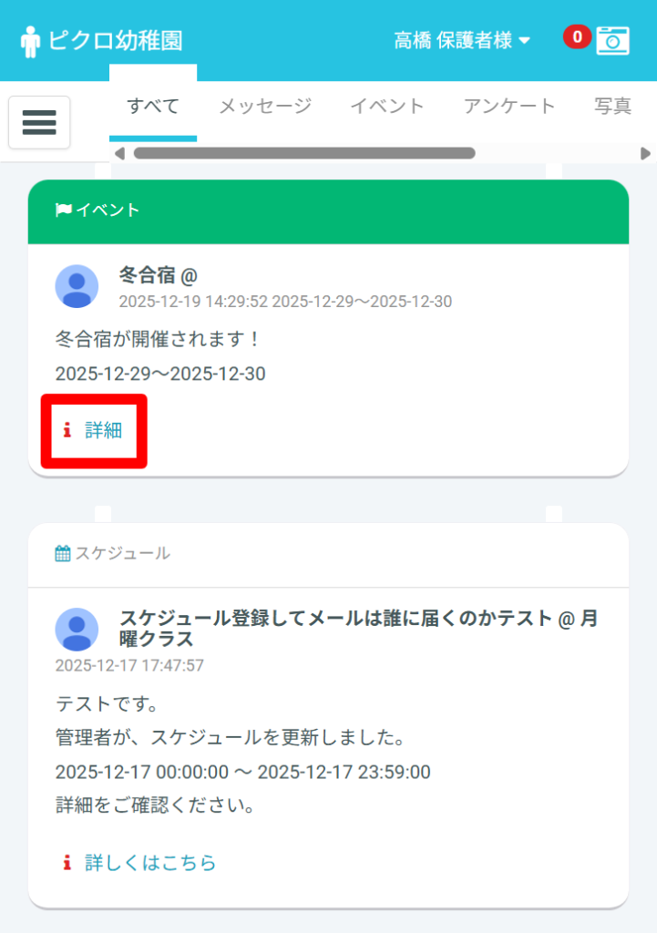 スケジュールにもイベント情報が自動反映されています。