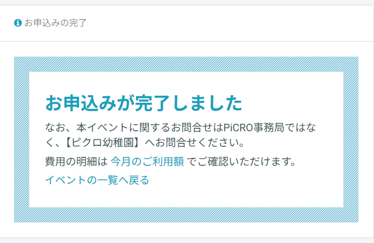 申込み完了となり、ご利用明細やスケジュールに情報が反映されます。