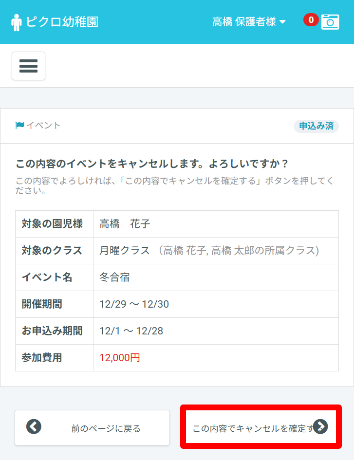 参加申込み後のキャンセル方法