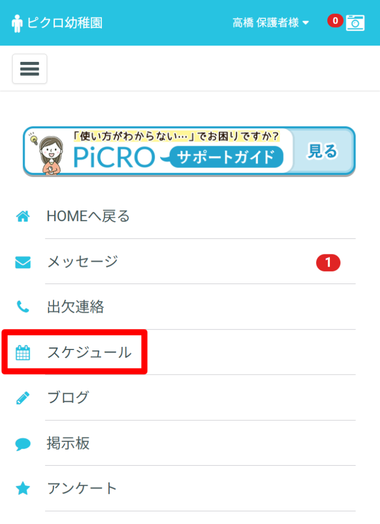 イベントスケジュールの確認はメニューの「スケジュール」を選択してください。