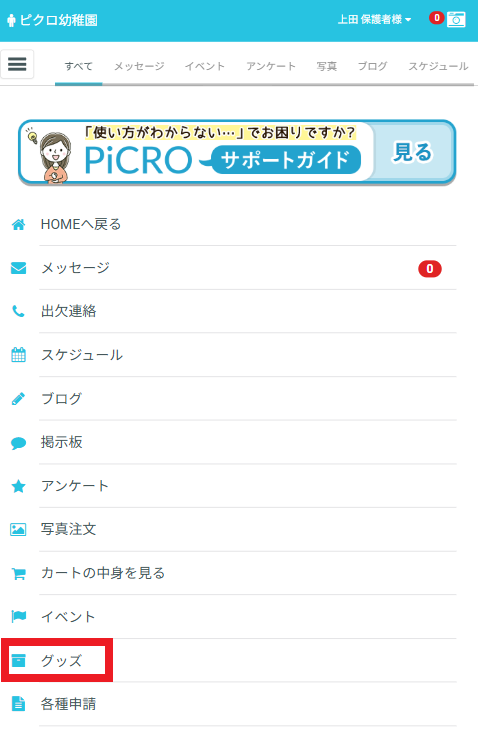 PiCROのマイページから、所属するスクールで販売されているグッズを購入できます。