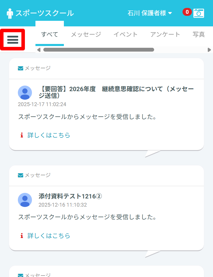 通常の出欠連絡方法については、下記の記事をご確認ください。