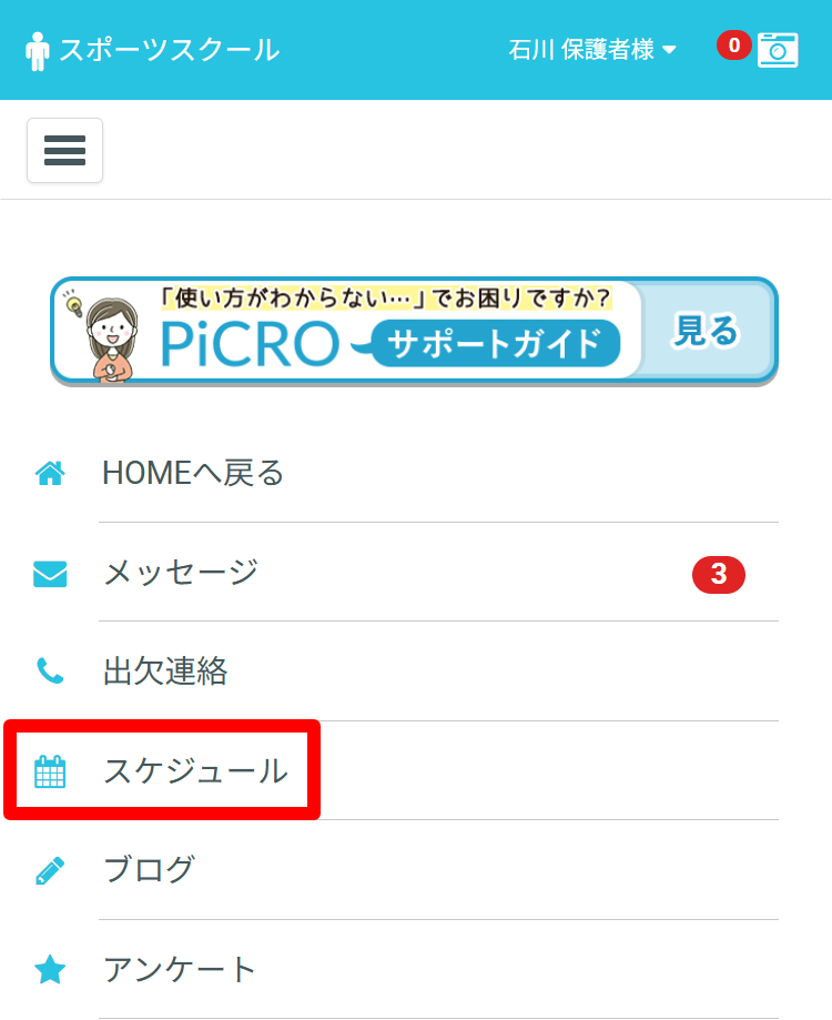 メニュー内にある「スケジュール」をタップします。