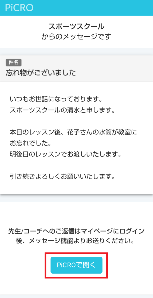 ※メッセージを受信するとPiCRO上には必ず表示されますので、PiCROも併せてご確認ください。
